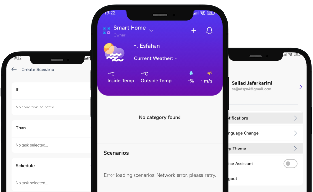 وقتی به خانه نزدیک میشوید، قفل هوشمند در را بدون نیاز به کلید برایتان باز میکند. سنسور حضور، ورود شما را تشخیص میدهد و مسیر تا داخل خانه با نوری ملایم روشن میشود. دما بهطور خودکار روی حالت دلخواهتان تنظیم شده و پردهها آرام باز میشوند تا فضا نفس